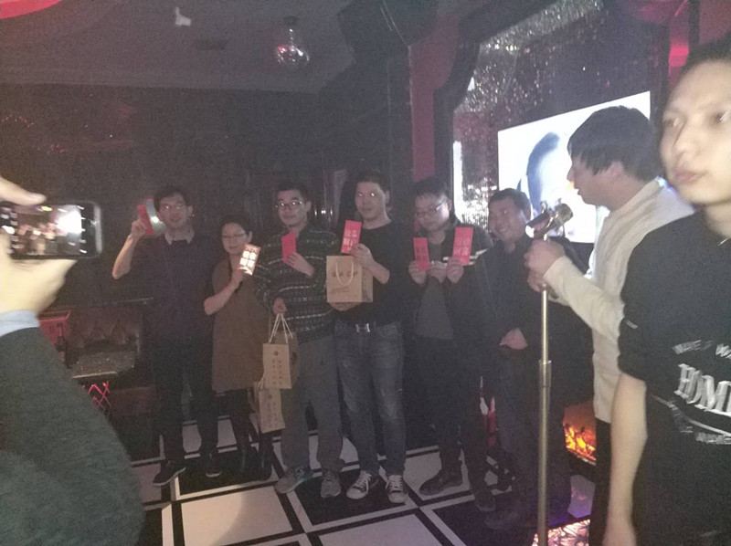 下圖為員工及家人獲得新年獎品(大小不等的現(xiàn)金獎)及禮物(宜興特產(chǎn)紫砂杯子)喜悅的心情