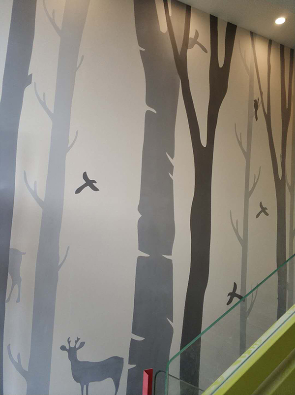 以下樓梯間效果圖:瞬間讓小朋友置身于奇妙森林,有種快樂(lè)自由自在之感!