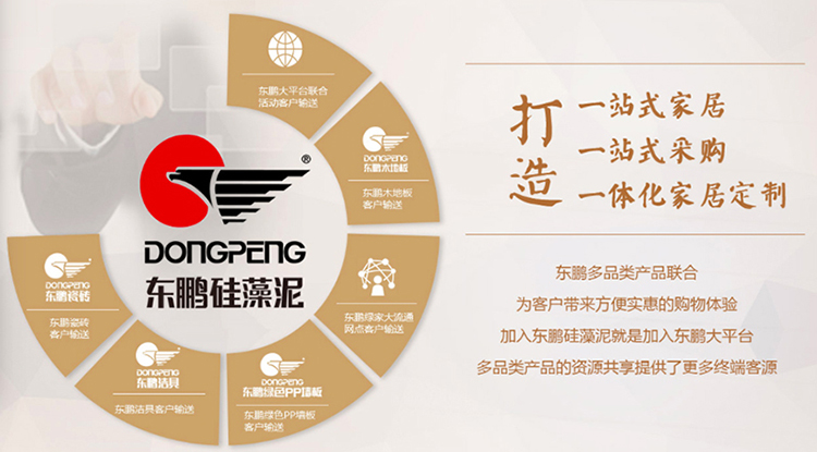 東鵬瓷磚,東鵬潔具,東鵬涂料、瓷磚等大流通產(chǎn)品、木地板多品類產(chǎn)品聯(lián)合,加入東鵬大平臺(tái),資源共享,渠道共榮。