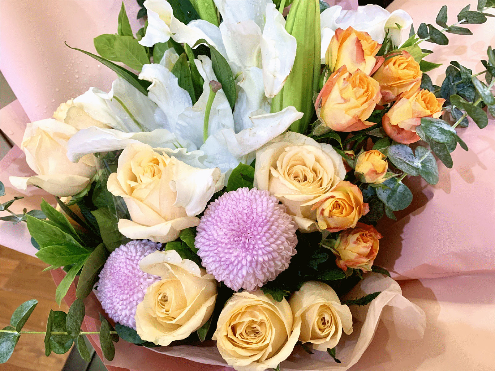 香檳色玫瑰搭配尤加利,百合的清香彌漫展廳